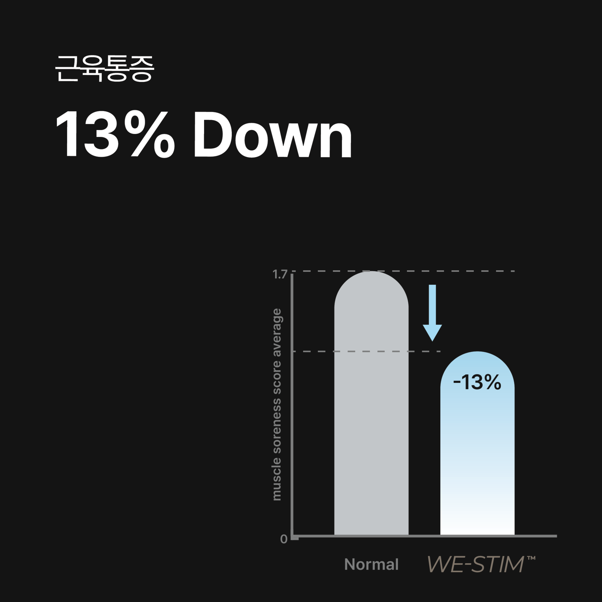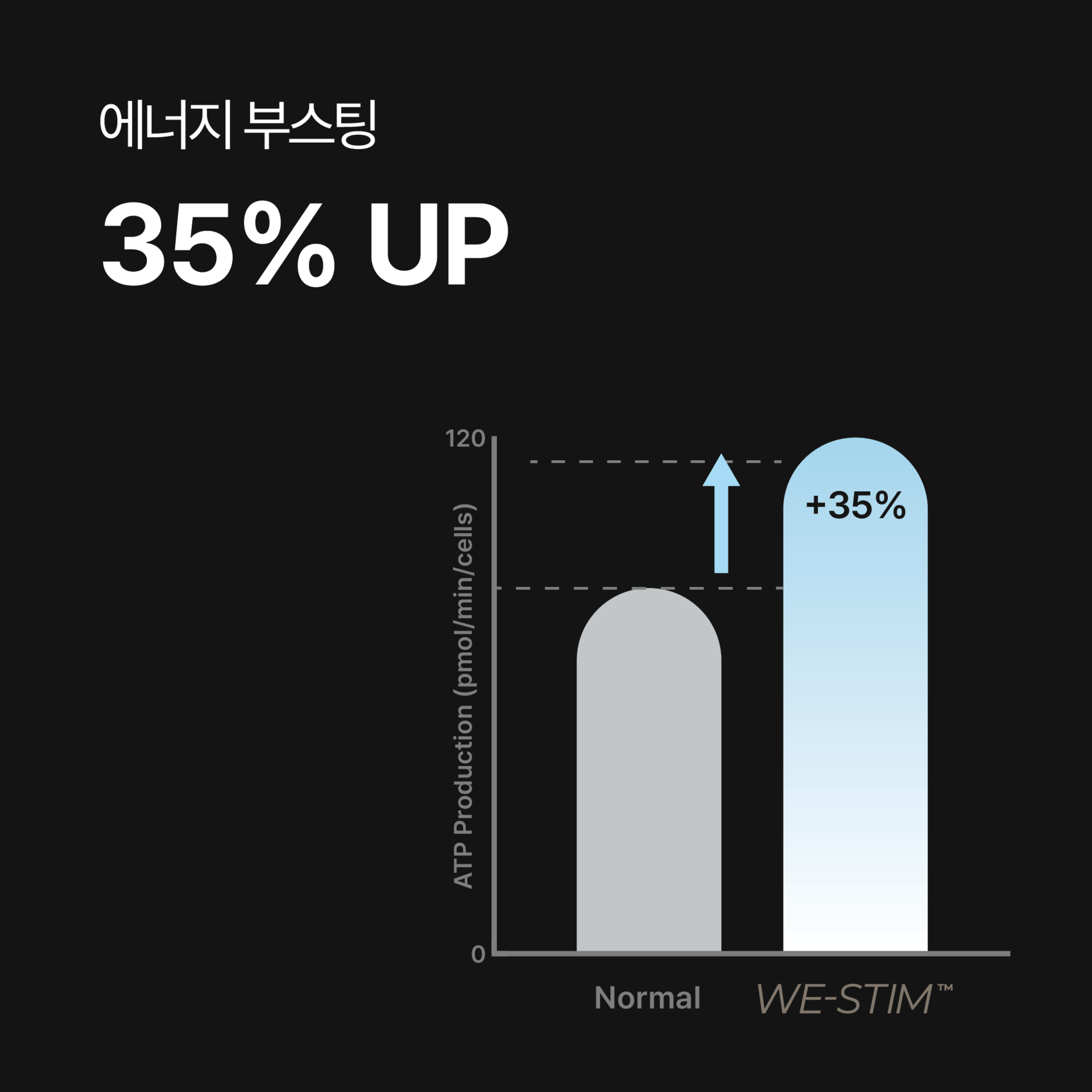 인체의 모든 활동은 미세한 전기에너지를 발생시키고 사용하지 않으면 소멸됩니다. WE-STIM™ 은 이러한 미세전기에너지를 포착해 필요한 근육과 세포에 정확히 전달함으로써 근육 회복을 촉진하는 기술입니다. 활성화된 근육세포는 손상된 조직을 빠르게 재생하고, 다음 활동을 위한 에너지를 충전해, 지속 가능한 건강을 유지할 수 있도록 돕습니다.
